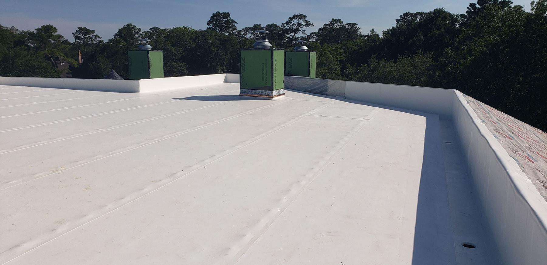 Flat roofs are the go-to for builders and architects who are looking to install a low pitch roof (less than 2/12). Flat roofs also include decks and balconies. Flat roofs are aesthetically pleasing and are energy efficient if installed correctly. Flat roofs come in a variety of colors. Flat roofs are actually not flat so having an expert team that knows how to properly pitch a flat roof is very important. Tile Roofs of Texas has experience installing both 3-ply flat roof systems and TPO membrane systems. With proper maintenance flat roofs can last well over 20 years.