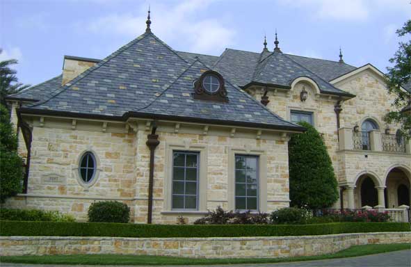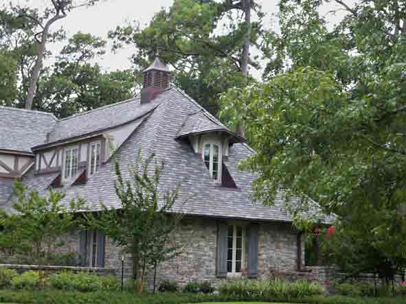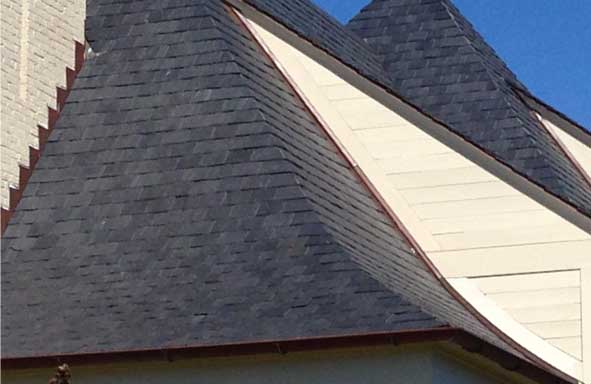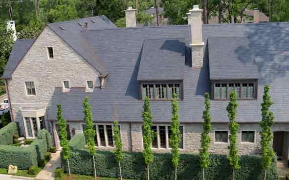Slate roofing has been around for thousands of years. Its beauty and longevity has made it the roofing choice of some of the oldest and most beautiful buildings and homes in the world. Slate comes in a variety of colors and sizes from many different countries. It is a natural material and may change from year to year as it is exposed to the elements. See our gallery for a sampling of beautiful slate roofs.